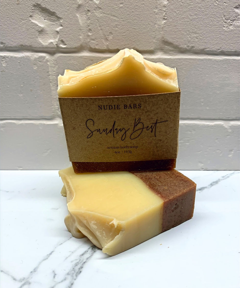 The Peppermint essential oils mix with the cocoa butter to give this NUDIE BAR a scent of White Chocolate & Mint, mmmmm... Enjoy rich creamy lather thanks to the kaolin clay and the castor oil.